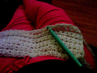 Started working on the blanket. Because I'm using a 3 strand mix of yarn and a bog hook its working up fast.