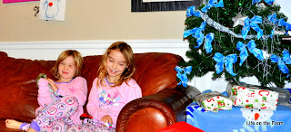 The top picture is from Christmas Eve, in the Polish tradition we open the present then. In our house we open presents many times. On Christmas Eve the kids open presents from their grandparents and my cousin and the pj's we get them every year. Christmas morning they get to open their presents from Santa (the bottom pic is the tree in the family room where Santa leaves his presents because that's where the fire place is), when everyone else is up and over we open stockings and after breakfast the rest of the presents get opened. It makes for a nice pace, no one is overwhelmed with all these presents at once.